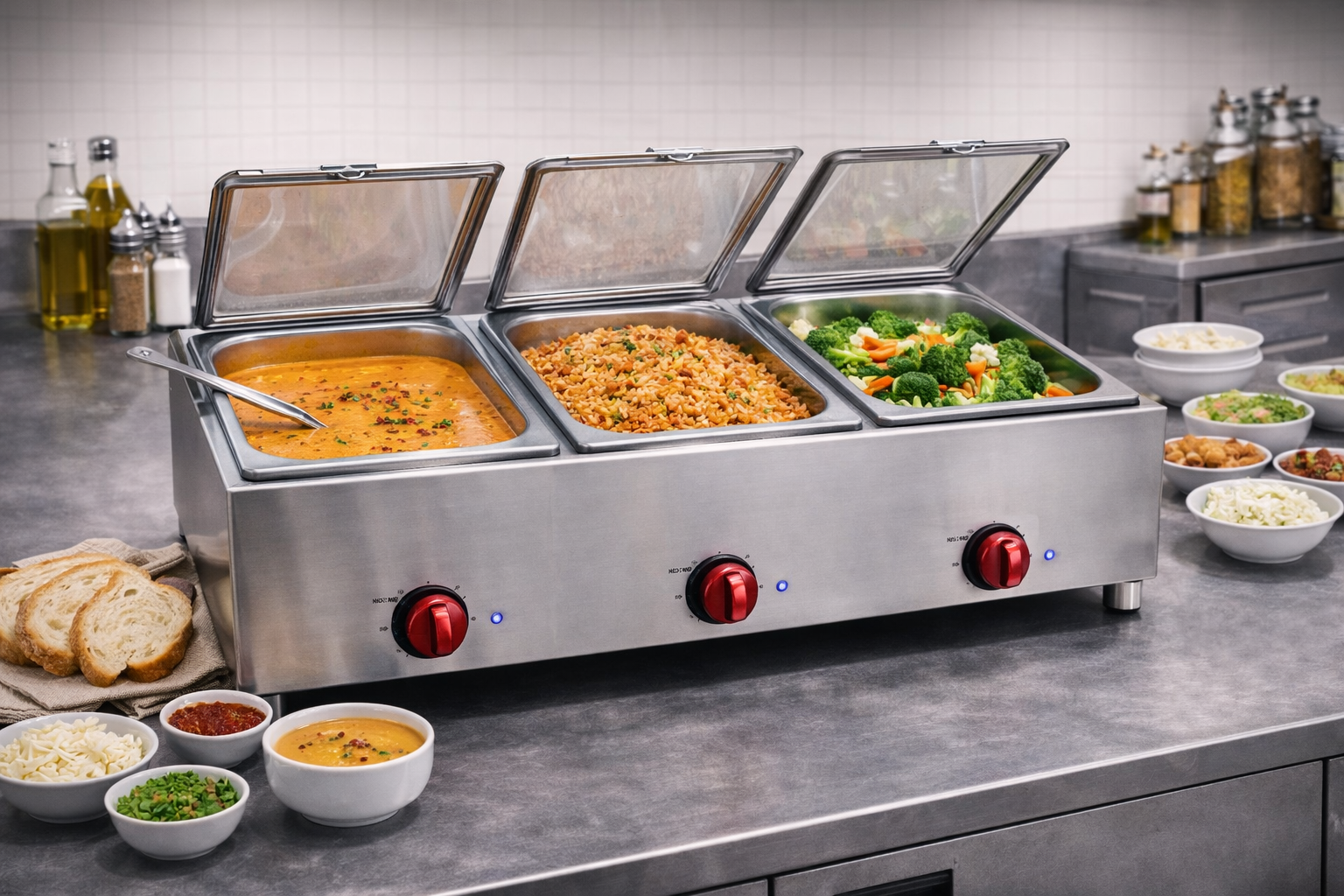 Sanayi tipi benmari ünite sistemleri sayesinde yemekler uzun süre sıcak kalır ve servis sırasında kalite kaybı yaşanmaz. Bu durum özellikle açık büfe servislerde büyük avantaj sağlar.