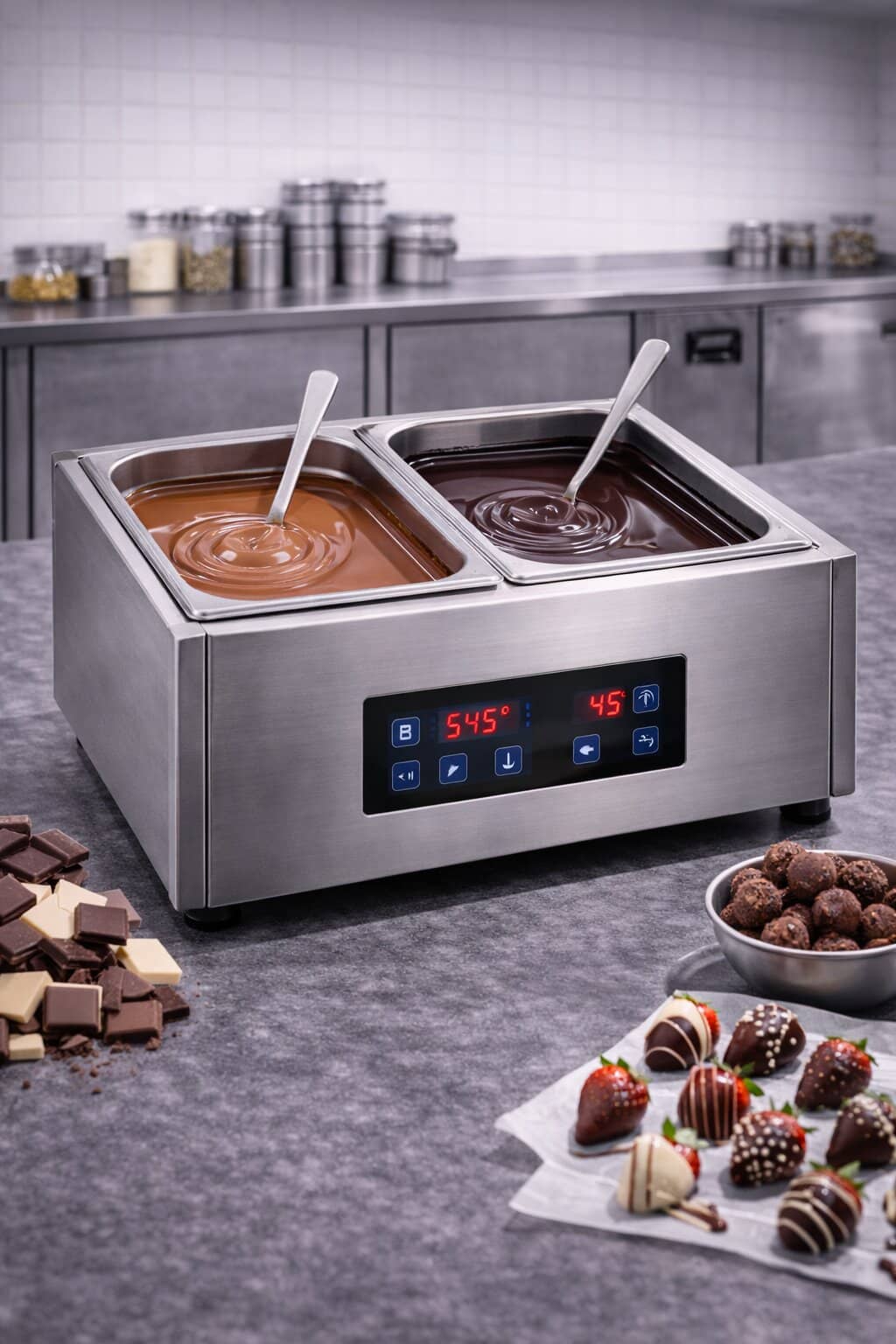 Profesyonel mutfak ekipmanlarında dayanıklılık ve hijyen standartları oldukça önemlidir. Çikolata eritme ünitesi modelleri genellikle paslanmaz çelik gövde ile üretilir.