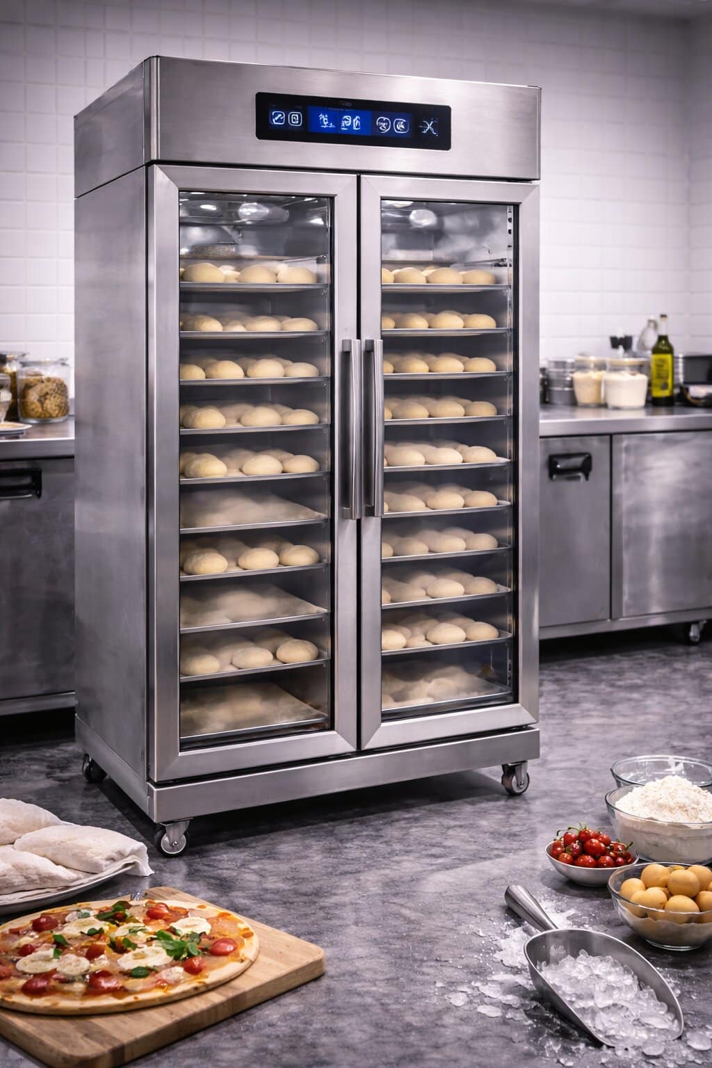 Profesyonel bir hamur dinlendirme dolabı, sıcaklık ve nem oranını hassas şekilde ayarlayabilen kontrol paneline sahiptir. Bu sistem sayesinde hamurun ihtiyaç duyduğu ideal fermantasyon ortamı oluşturulur. Aşırı sıcaklık hamurun hızlı ve dengesiz kabarmasına yol açabilirken, düşük sıcaklık fermantasyon süresini uzatır. Stabil ortam ise homojen kabarma sağlar.