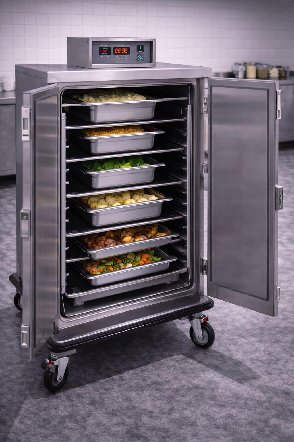 Isıtmalı banket arabası, servis saatine kadar sıcaklık kontrolü sağlar. Bu durum zaman planlamasını kolaylaştırır.