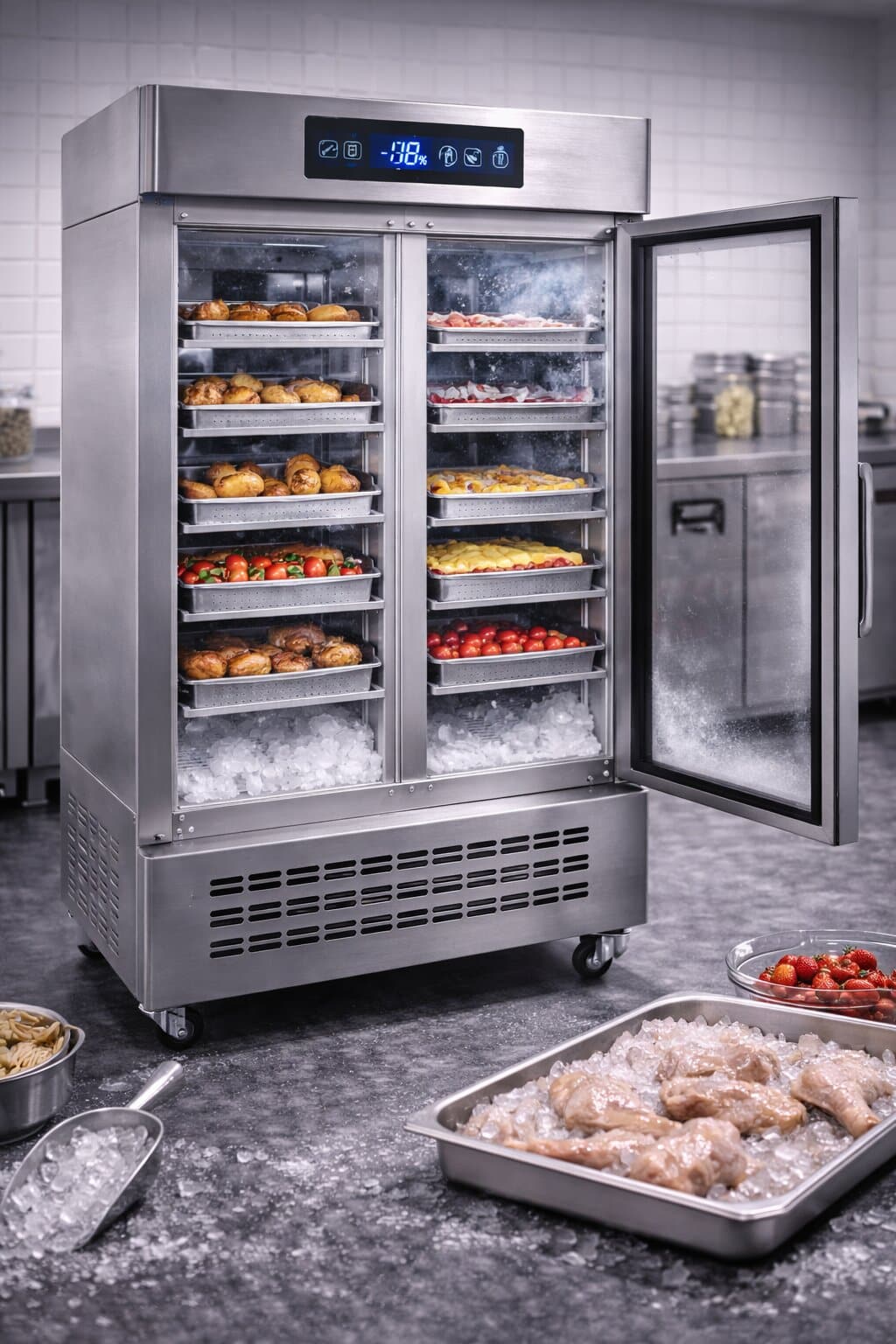 Şok soğutucu, pişirilmiş ürünlerin sıcaklığını hızlı ve güvenli şekilde düşürerek gıda güvenliğini ve kalite standardını koruyan profesyonel soğutma ekipmanıdır.